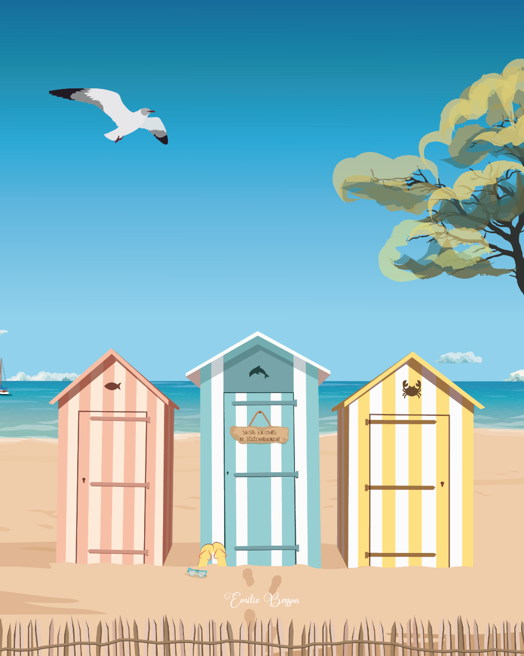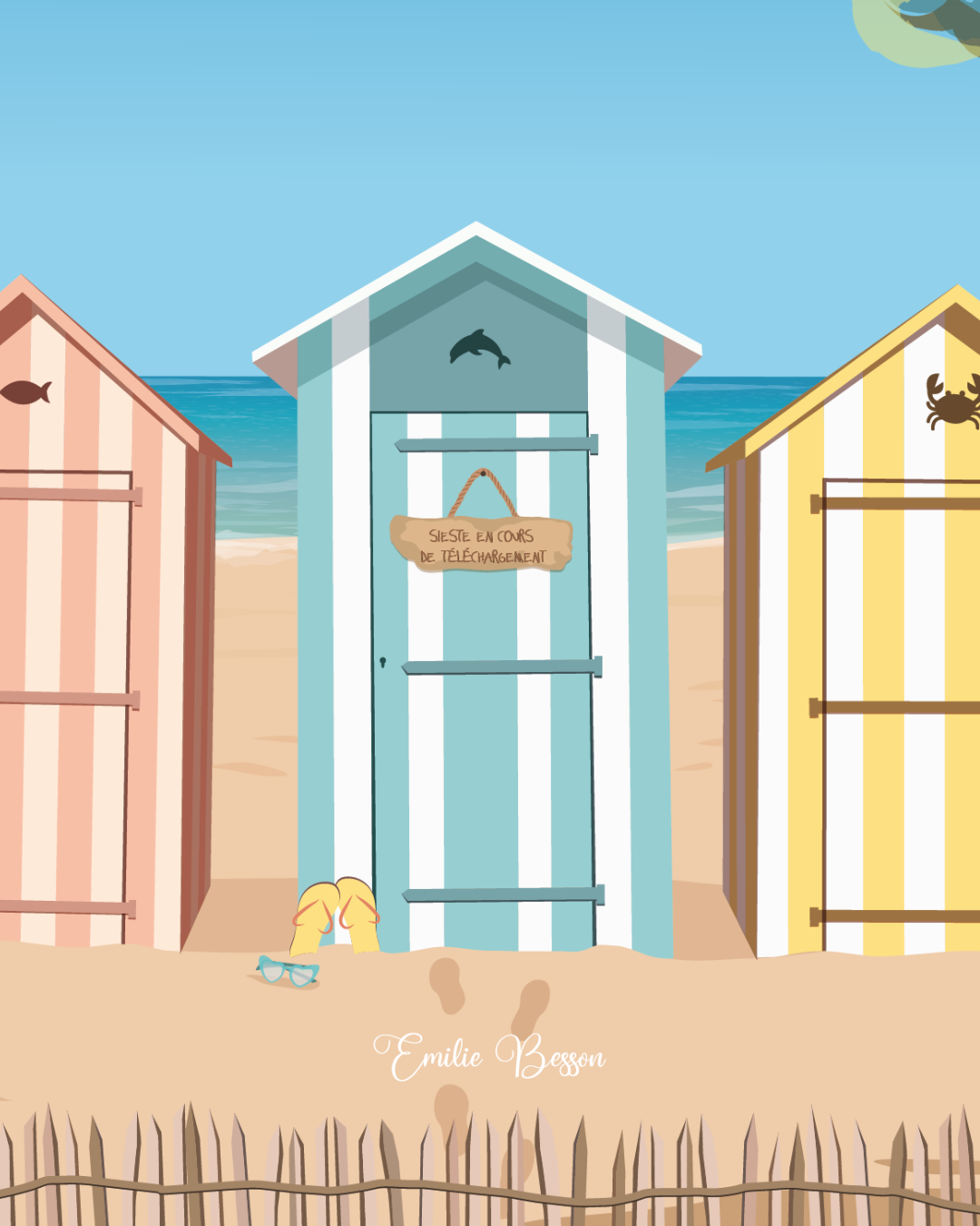 Une affiche digitale illustrée des cabanes colorées qui bordent les jolies plages de l’ïle. Invitez le soleil et l’été dans votre maison !